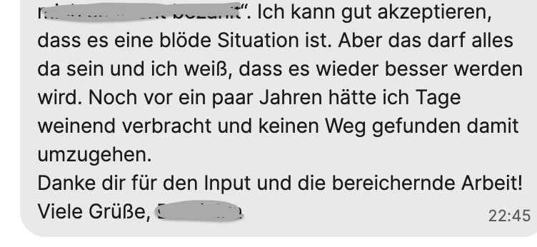 Findest du deine Frage nicht? Du kannst mir gern schreiben oder dir ein Kennenlerngesrpäch reservieren.